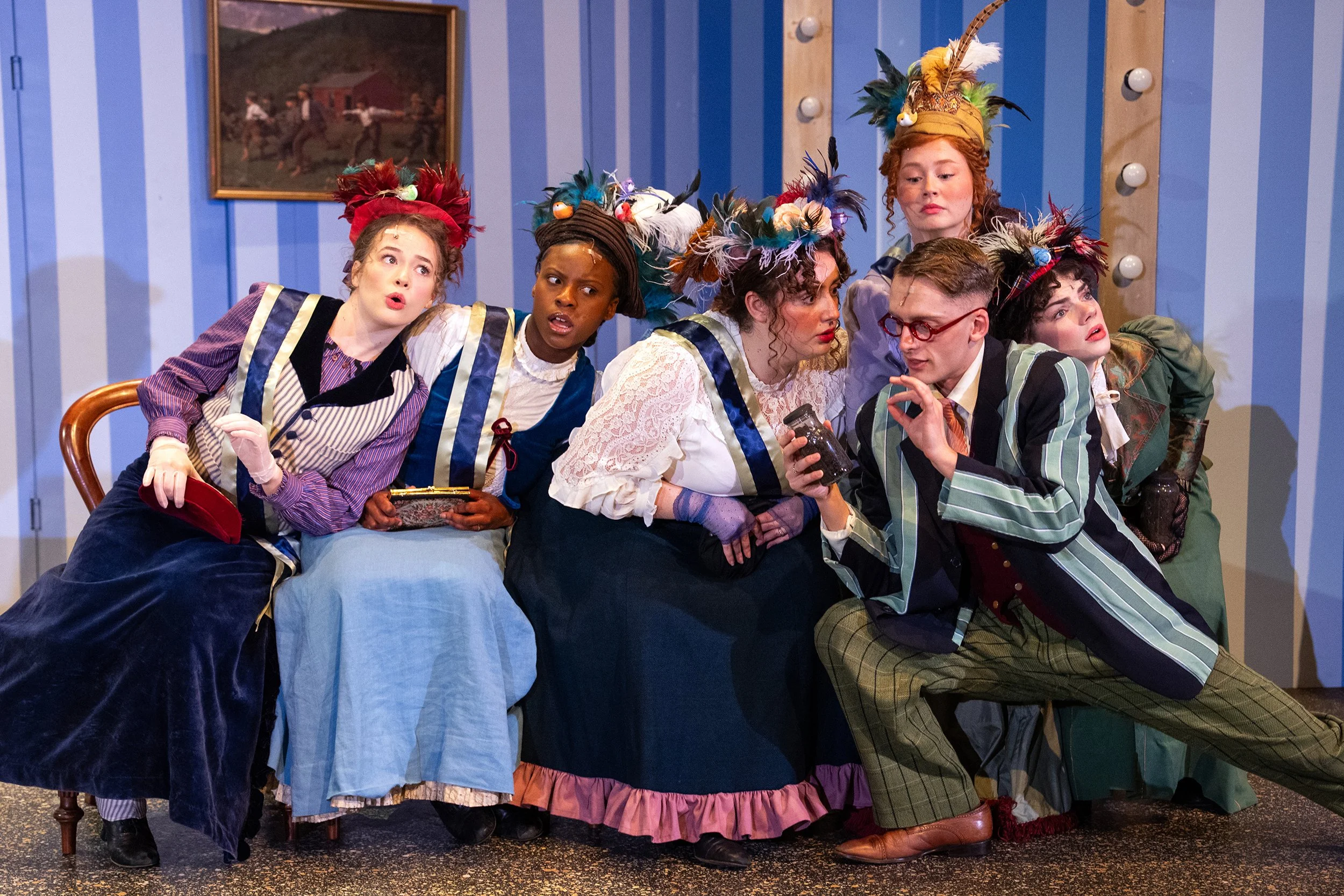I generally photograph productions during the dress rehearsal as it allows me to move around and try and get the best angles (despite the seating often getting in the way but I am well practiced at clambering over seats quickly). I might sometimes make notes of a scene and then, at the end of the rehearsal, see if a scene can be recreated with a few minor changes – this isn’t always possible as actors might no longer be in the right costume or the set may have changed. The best option, in my opinion, for a production photography photoshoot is having a specific performance just for the photos. This then allows me to stop the action if needed and slightly tweak placements and positioning for the best dramatic effect in the image. It also eliminates dress rehearsal issues of the stage changing or performers changing costume if I try to recreate a scene at the end.